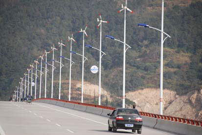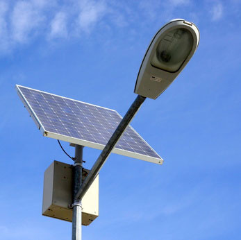 . Eclairage public par des lampadaires alimentés par énergie photovoltaïque, ou hybride photovoltaïque-éolienne en Afrique.